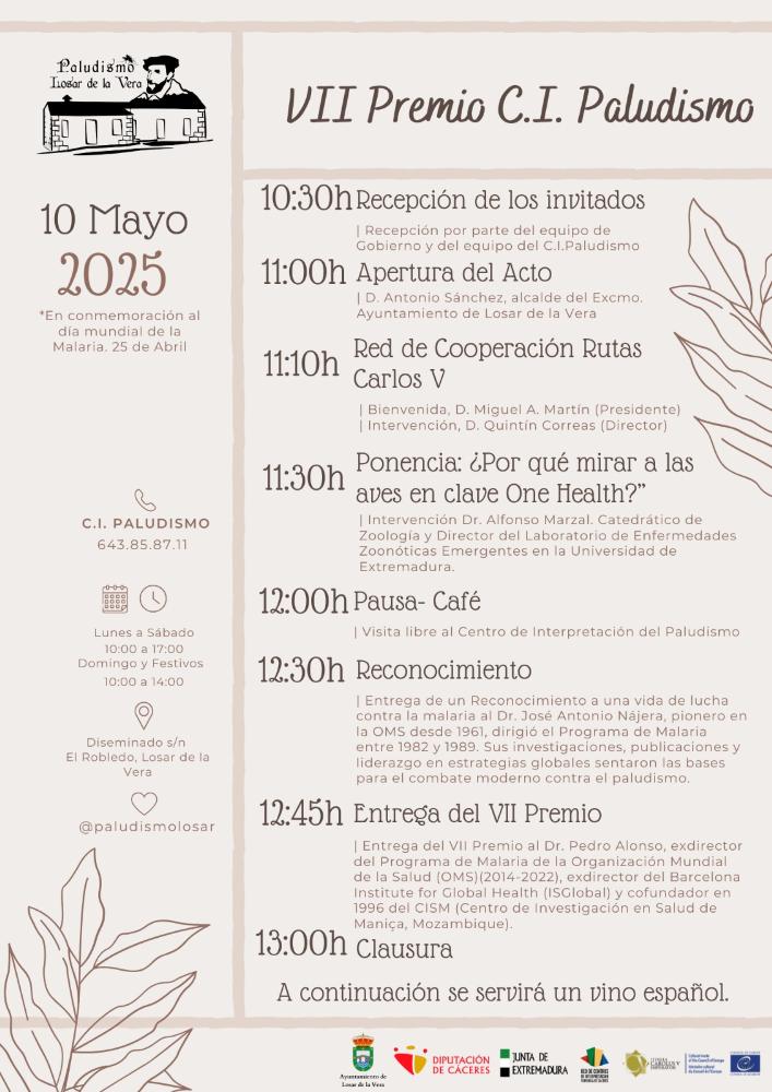 El VII Premio C.I. Paludismo 2025 se celebrará el sábado, 10 de mayo, a partir de las 10:30 h. en el Centro de Interpretación del Robledo.
